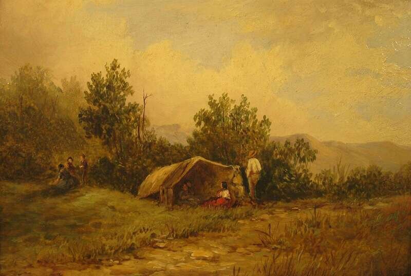 ALFRED VICKERS (BRITISH FL.1853-1907) PICNICKING UNDER A TENT
