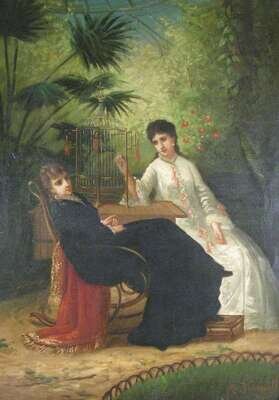 ELIZA JOINVILLE (FRENCH 19TH CENTURY) "THE PET BIRD"