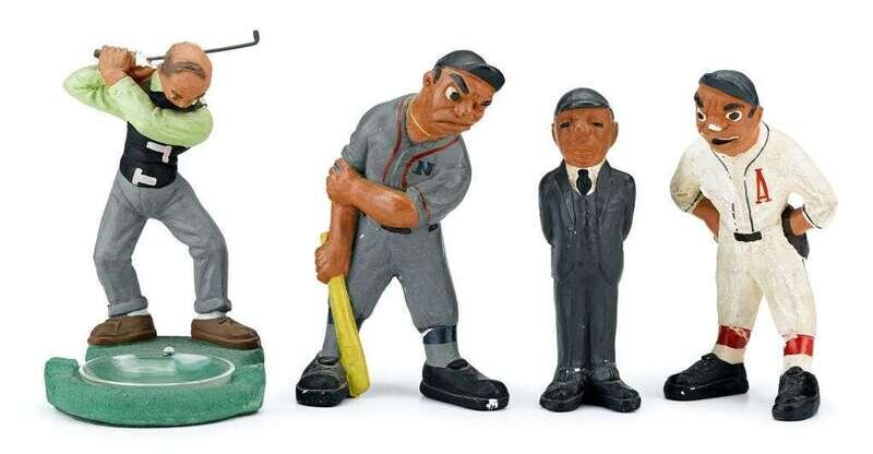 Each base ball figure marked, " Lafayette L. Rittger's co. 1941," including Umpire and two ball players and golfer figure/ ashtray.