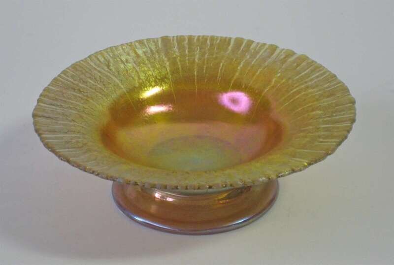 Iridescent yellow Favrile Art Glass bon bon dish l.c. tiffany, favrile