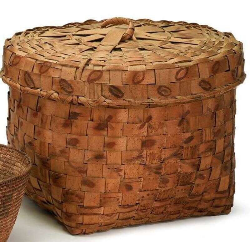 Decorated splint Northeast Indian Covered Basket mohegan pequot, new england, early 19th century