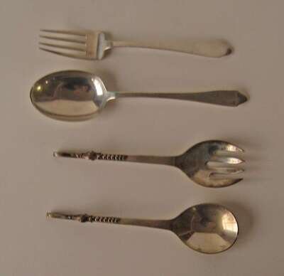 "Clinton" pattern together with Mexican sterling silver two piece salad set in the "Danish" design.