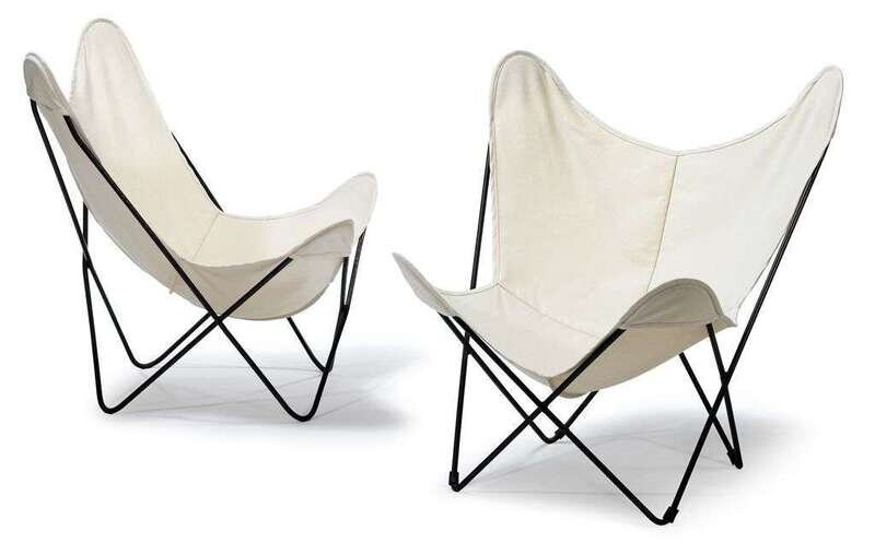 Pair of iron and canvas butterfly chairs after 1960