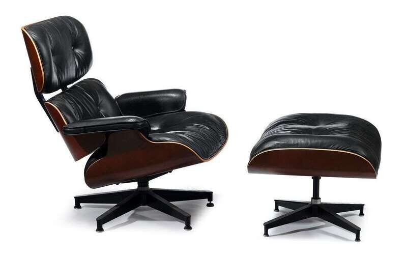 Leather lounge chair and ottoman charles and ray eames, 1907-1978 & 1912-1988, for herman miller