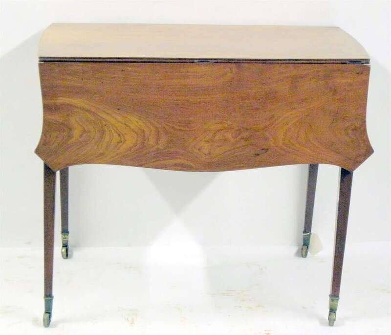 Rectangular top with shaped drop-down sides, over straight tapered legs.