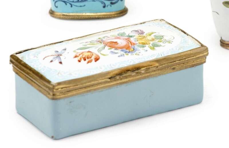 English gilt metal mounted enamel pill box 19th century