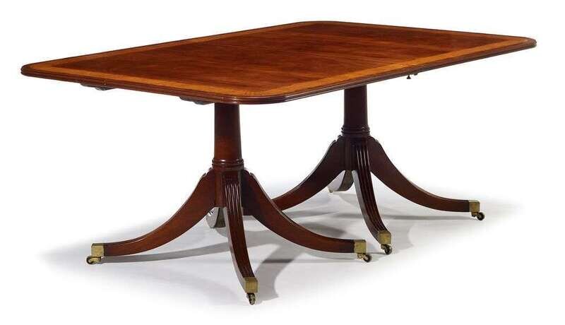 George III style cross banded mahogany twin pedestal dining table