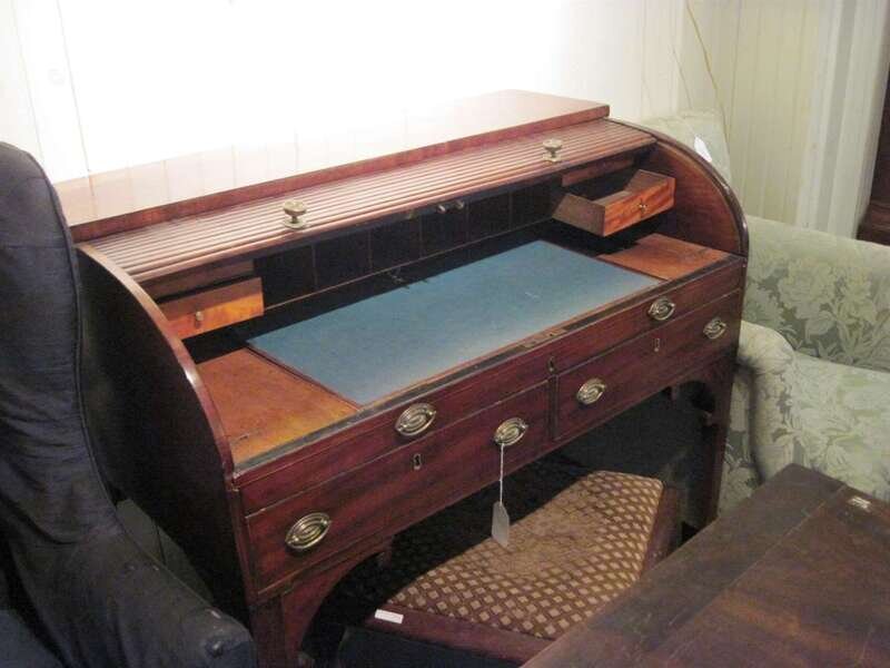 George III mahogany and satinwood tambour desk late 18th/ early 19th century