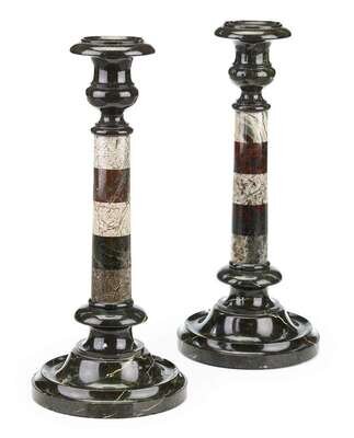 Pair of Cornish specimen marble candlesticks 19th century