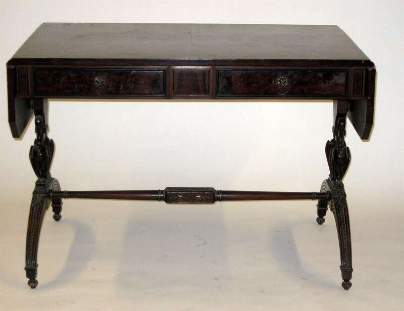 Regency style rosewood and burl walnut sofa table
