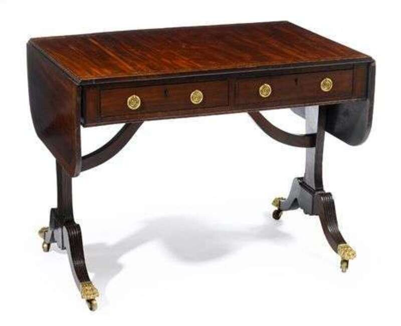 Regency line inlaid mahogany sofa table 19th century