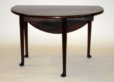 The rectangular top with two D-shaped drop leaves, raised on round turned legs, ending in pad feet.