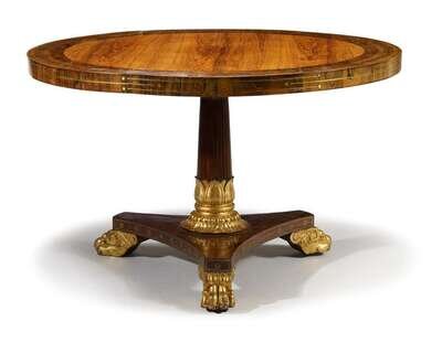 Regency style rosewood parcel-gilt and brass inlaid center table
