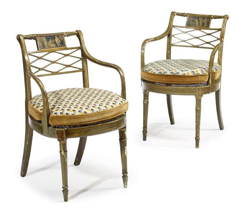 Pair of Regency green and gilt painted armchairs circa 1810