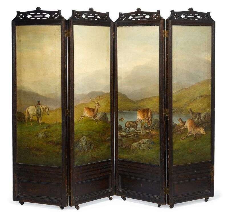 Victorian painted four panel screen attributed to william luker snr. (british, 1828-1905)