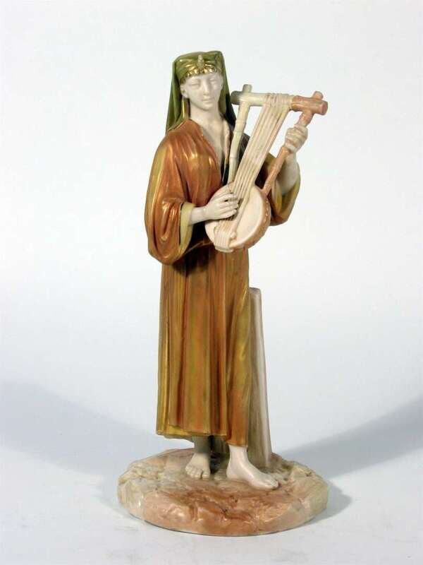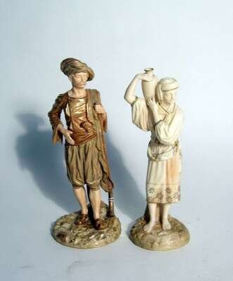 Comprising a figure of a musician in Eastern dress, a female water carrier and a figure of a Bringaree Indian in a turban; undersides with printed and impressed marks.(3).