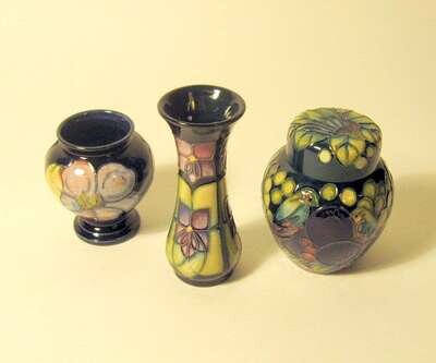 Group of three small Moorcroft vases last half 20th century