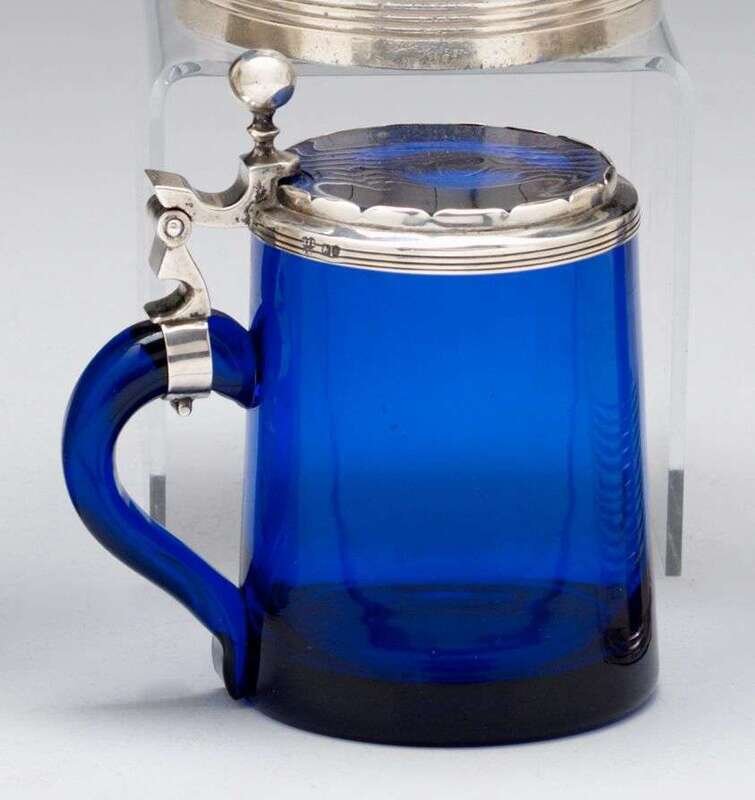 Victorian sterling silver mounted Bristol glass miniature tankard london, 1861