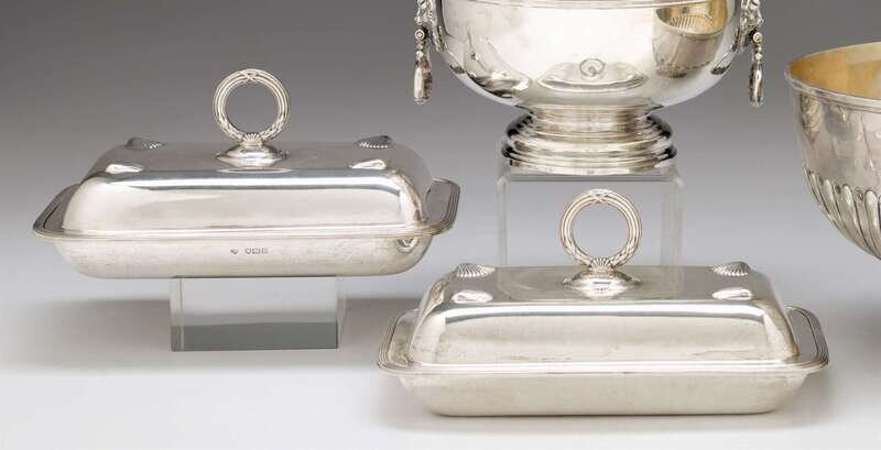 Pair of English sterling silver covered entree dishes goldsmiths & silversmiths, london, 1910