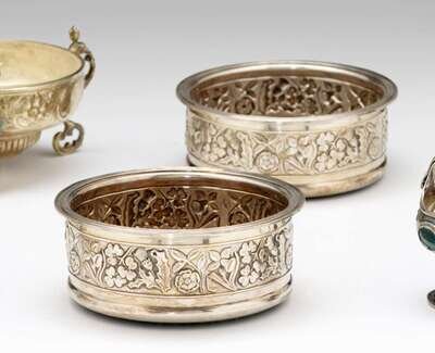 Pair of English sterling silver wine coasters mappin & webb, london