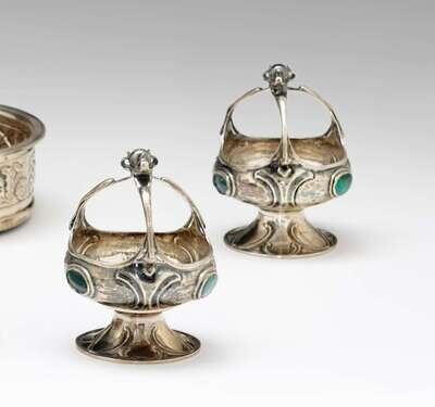 Pair of Edwardian Art Nouveau sterling silver sweetmeat dishes mappin & webb, london, 1906