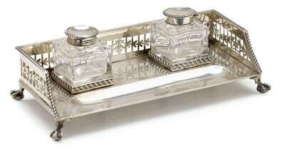 English sterling silver and cut glass inkstand sheffield, 1925