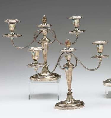 Pair of English sterling silver candelabra israel freeman & son ltd., london, mid 20th century