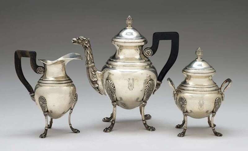 Continental silver three piece neoclassical coffee service possibly german, 19th century