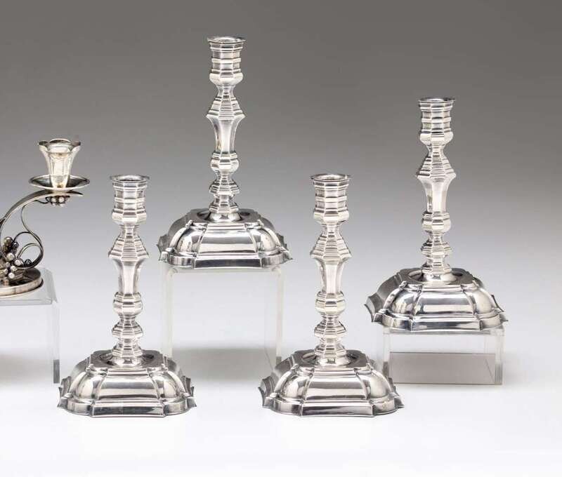 Set of four Danish sterling silver candlesticks anton michelson, early 20th century