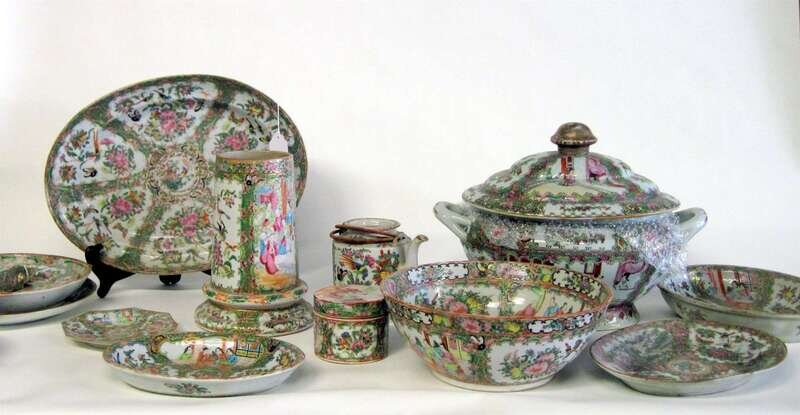 Assembled Chinese Export Rose Medallion porcelain dinner service mostly 19th century