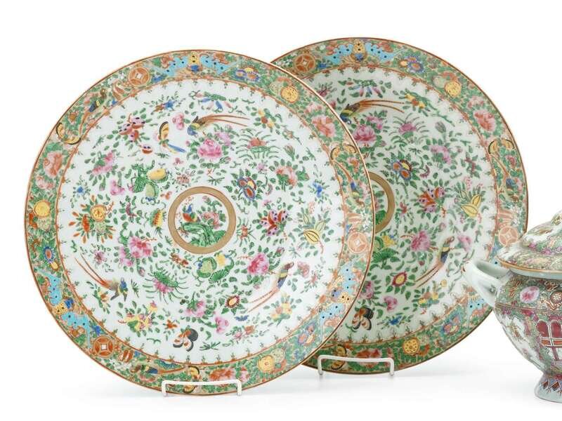 Pair of Chinese Export rose medallion chargers 19th century