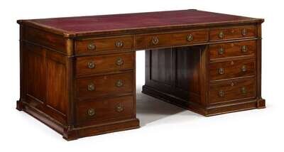Large George III style mahogany twin pedestal partners desk 19th century