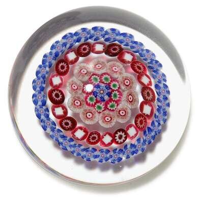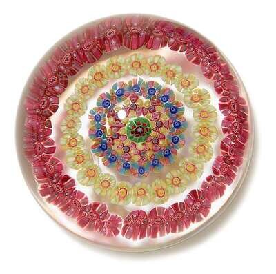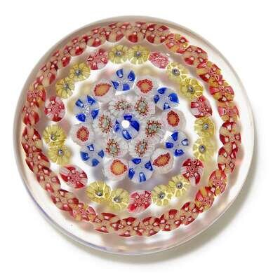 Each with four concentric bands of canes and a central cane, in clear glass, etched marks.(5).