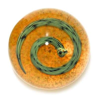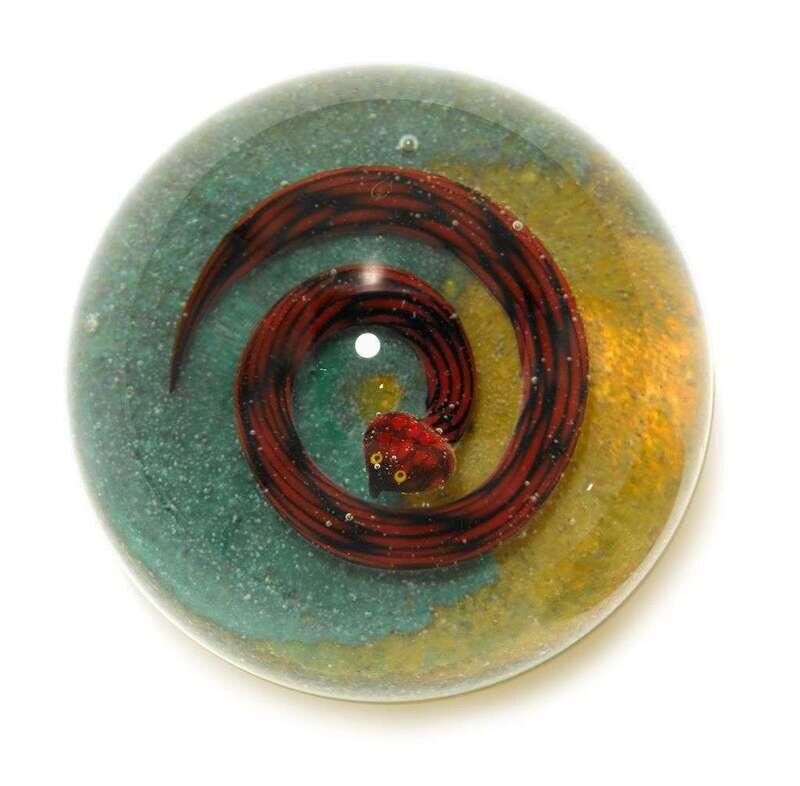 The first with a green cobra on gold sand; the other with a red and black cobra on blue sand; both signed Harold J. Hacker.(2).