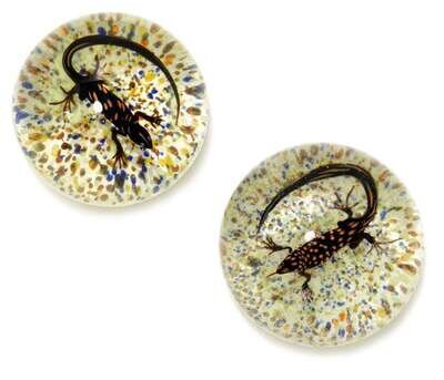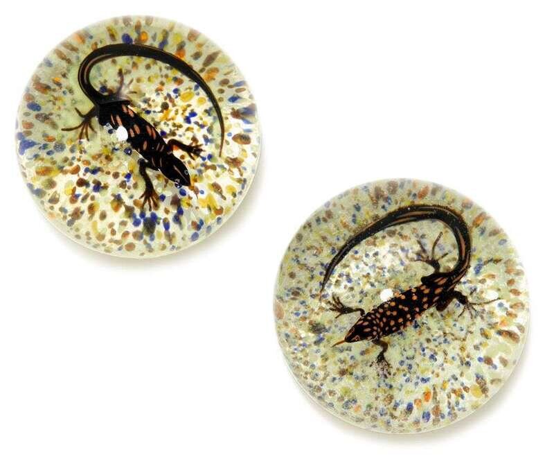 Each black with orange spots, on multi-colored ground, signed Harold J. Hacker.(2).
