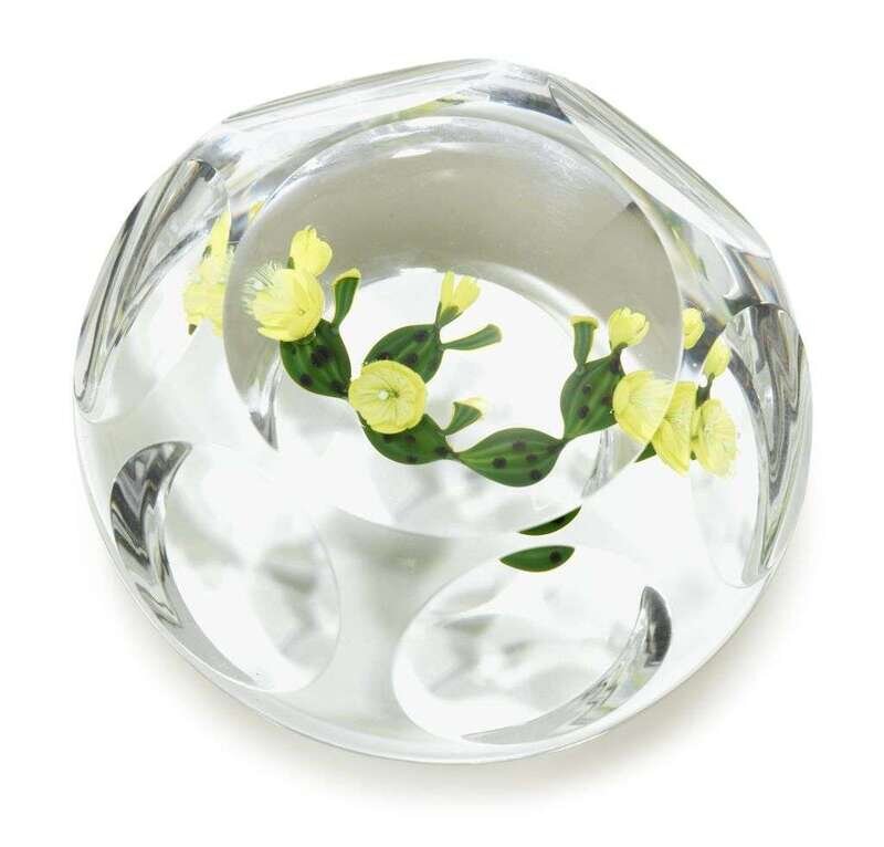 Paul Stankard 'Yellow Cactus' faceted paperweight