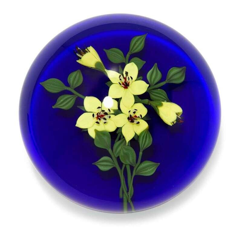 Paul Stankard 'Triple Yellow Meadowreath' paperweight
