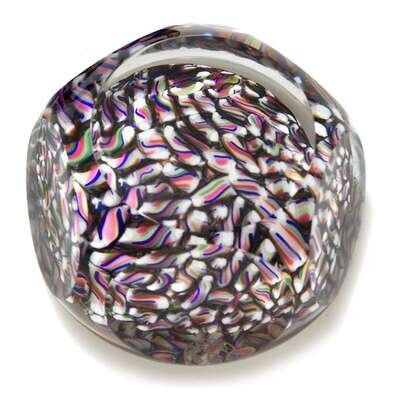 Comprising a millefiori cushion with zodiac canes, dated 1967; a broken candy cane cushion; and a complicated pansy with three buds, design by Francis Whittemore, on a blue ground, 1971 date cane, no. 397; etched marks.(3).