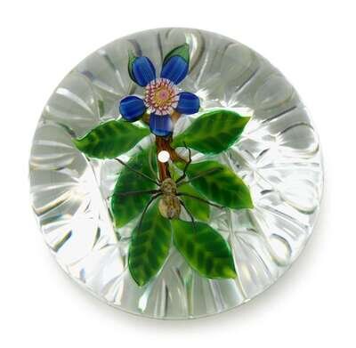 Delmo & Debbie Tarsitano 'Spider and Blue Flower' paperweight