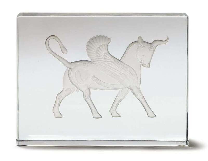 Baccarat ' Persian Winged Bull' engraved plaque