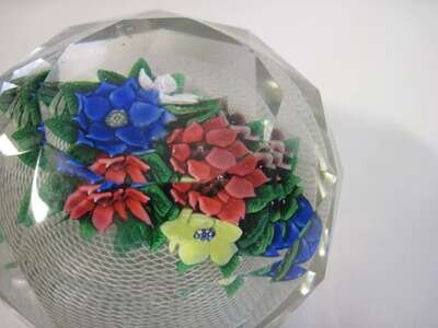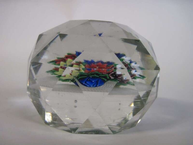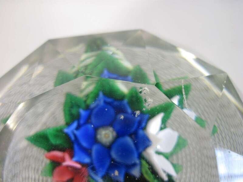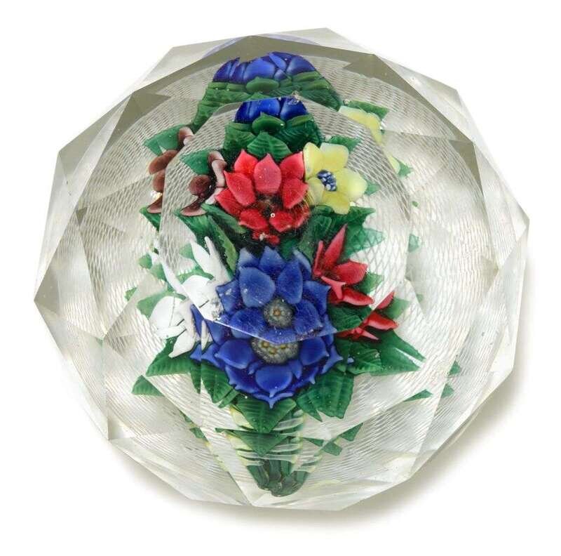 Antique New England Glass Co. faceted flat bouquet magnum paperweight circa 1860