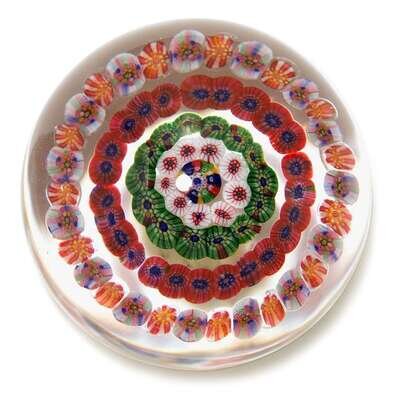 Comrprising two couronnes with four concentric rings of canes and a central cane; and two macedoines; all in clear glass with etched marks.(4).