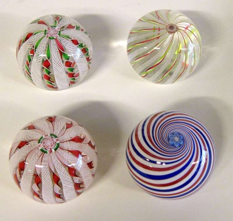 Four crown or swirl paperweights