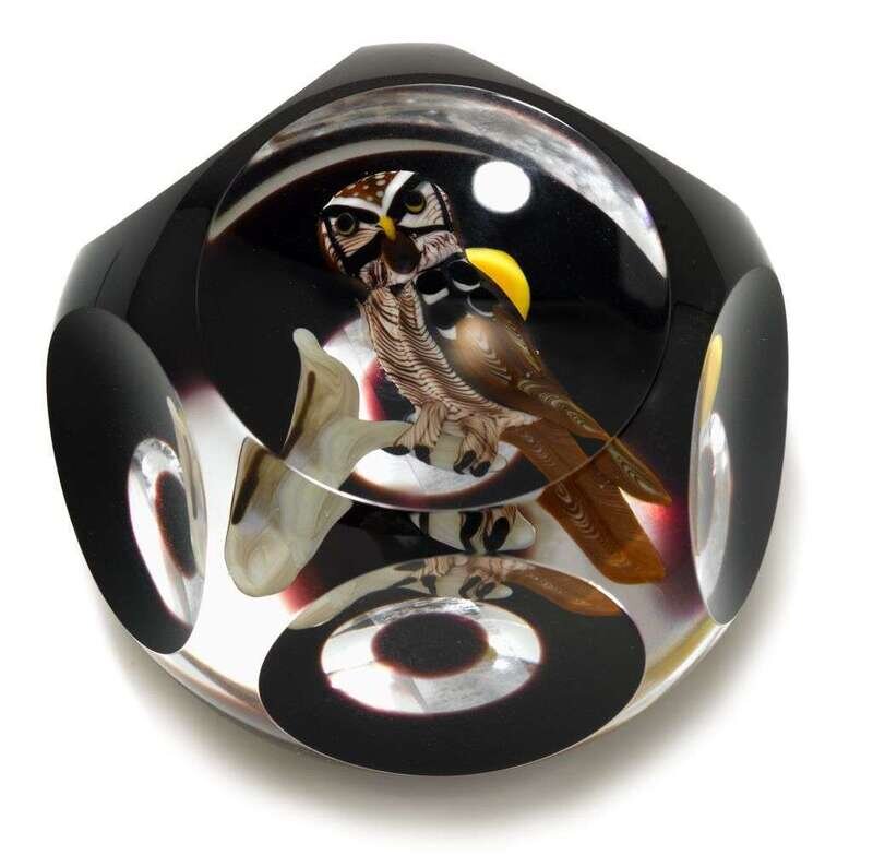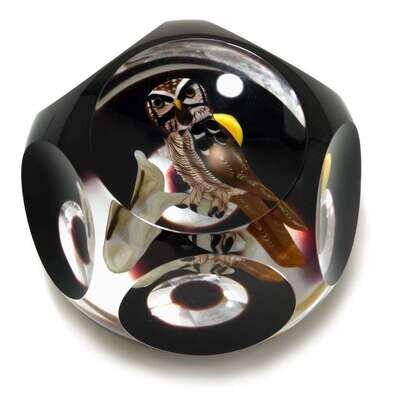 Rick Ayotte 'Owl with Moon' faceted compound paperweight