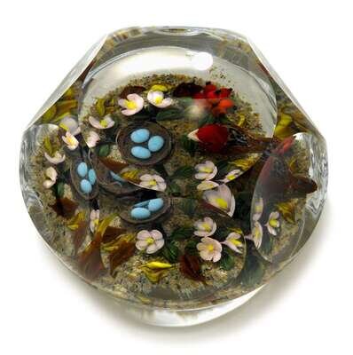 Rick Ayotte 'Bird and Nest' faceted paperweight