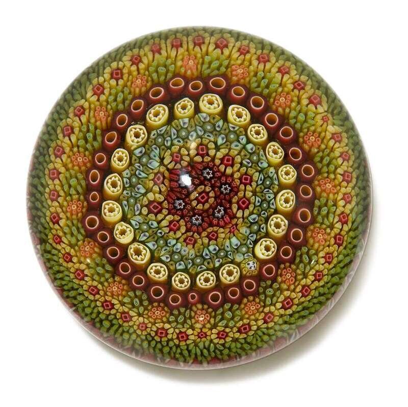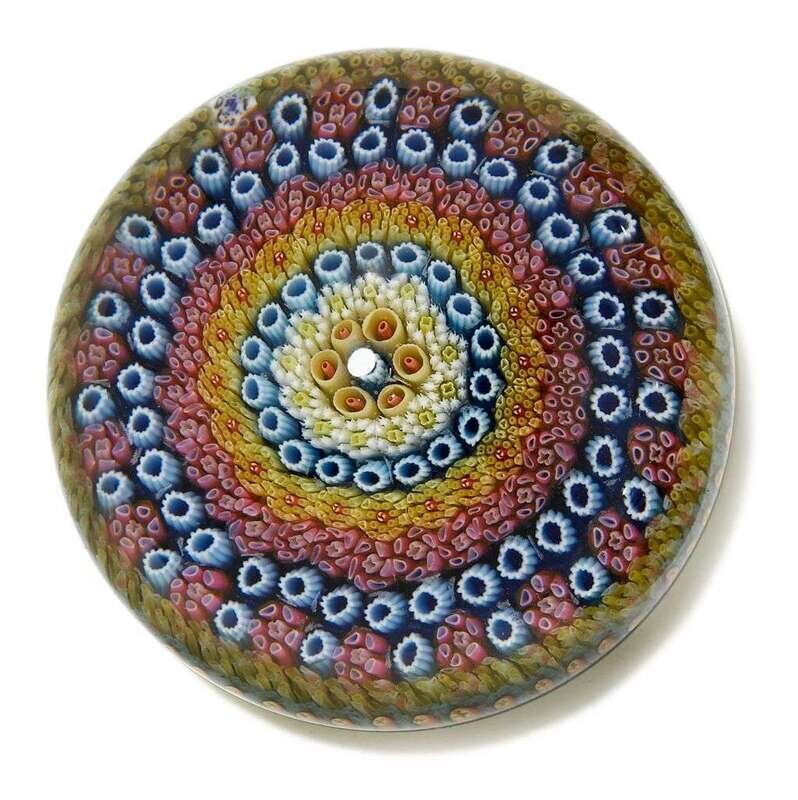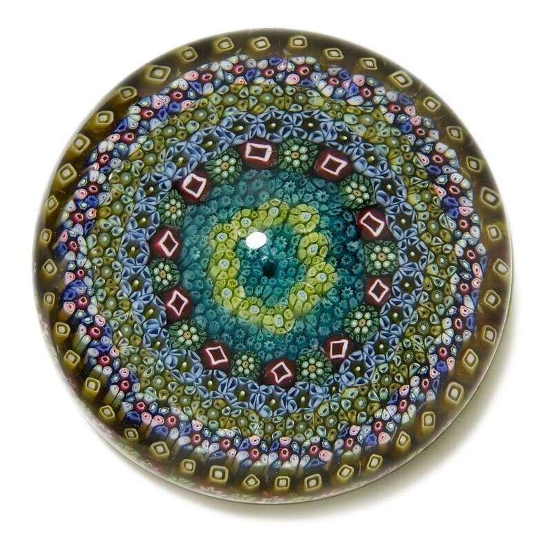 Each with multi-colored concentric bands of canes, date canes for 1968, 1969, .(4).