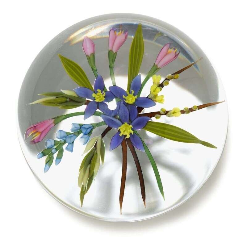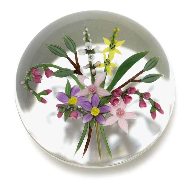 Two Chris Buzzini floral bouquet paperweights