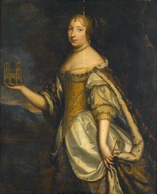 ATTRIBUTED TO CHARLES BEAUBRUN & HENRÍ BEAUBRUN (FRENCH 1604-1692, FRENCH 1603-1677) PORTRAIT OF A NOBLE LADY HOLDING A MODEL OF CATHEDRAL, PROBABLY NOTRE DAME