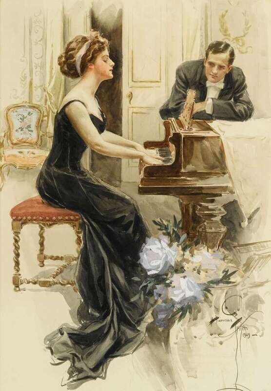 HARRISON FISHER (AMERICAN 1875-1934) A LADY AND HER SUITOR