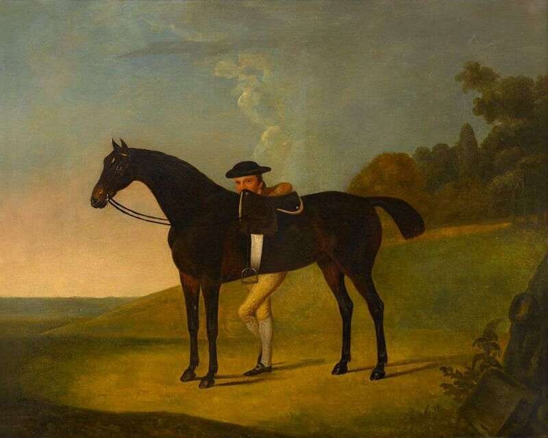 THOMAS STRINGER (BRITISH 1722-1790) A BAY WITH GROOM IN LANDSCAPE